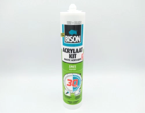 Bison is hét toonaangevende lijm- en kitmerk in de Benelux en ver daarbuiten een belangrijke fabrikant. U vindt bij ons dan ook een zeer uitgebreid assortiment Bison producten waaronder verschillende soorten acrylaatkit. Zo verkopen wij overschilderbare schilderskit, speciale sneldrogende acrylaatkit, structuurkit voor pleister- en stucwerk en regenvaste acrylaatkit voor buiten. Bij vragen kunnen wij u uiteraard altijd vrijblijvend adviseren.