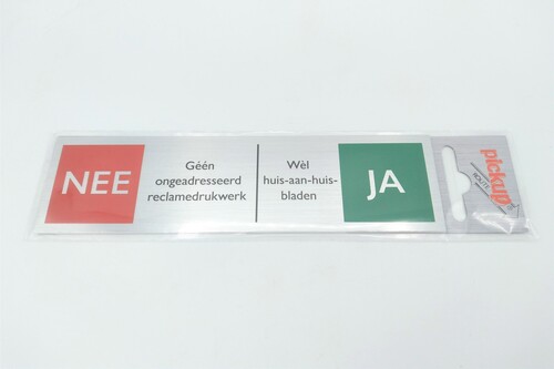 In onze winkel vindt u verschillende stickers en emaillen of aluminium bordjes tégen of vóór het ontvangen van huis-aan-huis bladen en reclamedrukwerk. Hierbij heeft u keuze uit nee-nee, ja-nee, ja-ja, en nee-ja. Met deze stickers en bordjes voorkomt u onnodige stapels met post en verspilt u geen papier. Door het aanbod van deze borden en stickers van verschillende materialen vindt u gegarandeerd iets wat goed bij uw deurbeslag past!
