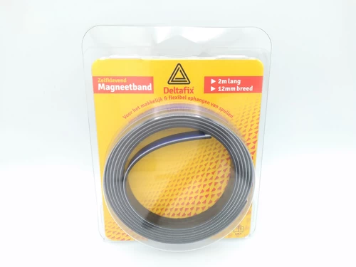 Bij Postma en Postma vindt u onder de Deltafix artikelen zelfklevende magneetband. Magneetband is erg handig om een magnetische achtergrond te creëren. De magneetband is geschikt voor het ophangen van lichte voorwerpen en kleeft aan vrijwel ieder materiaal. Daarnaast is deze erg makkelijk zelf te knippen en plakt deze niet op zichzelf, wat het een zeer gebruiksvriendelijk voorwerp maakt. Ook handig voor zelfgemaakte koelkastmagneten.