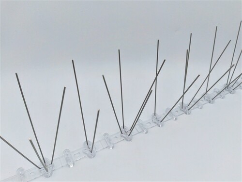 Om te voorkomen dat (nestelende) duiven uw huis, schuur, schutting, dak en/of goot bevuilen, kunt u duivenpinnen aanbrengen. Deze rvs strip met omhoogstaande sprieten voorkomt dat duiven op de bewuste plek gaan zitten of nestelen. Omdat duiven alleen ontlasten wanneer ze stilzitten, levert een duivennest vaak veel bevuiling op.