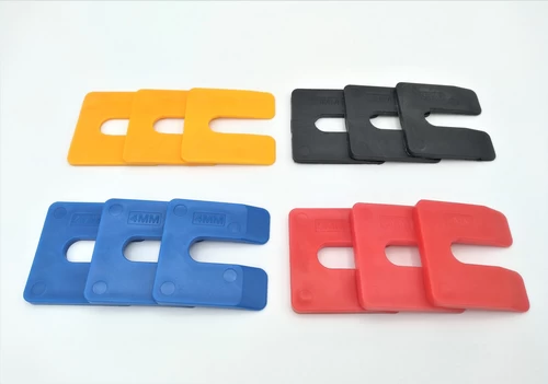 Opvulplaatjes zijn universeel te gebruiken vullertjes die kunnen worden toegepast waar ze ook maar nodig zijn. Dit kan zijn onder de koelkast, dit kan zijn achter aan scharnier, dit kan zijn tussen een meubel of in een houten voorzetwand. Echt op allerlei plekken waar even iets moet worden uitgevuld kan het handig zijn. De vulplaatjes worden geleverd in een assortibakje met een aantal verschillende diktes erin. De dikte staat op het plaatje vermeld in millimeters en tevens laat ook de kleur van het plaatje zien welke dikte het is; iedere dikte heeft z’n eigen kleur.