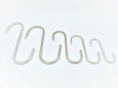 Vleeshaken zijn S-vormige haken met aan één poot van de S een punt. Deze punt is natuurlijk bedoeld om door het op te hangen vlees heen te prikken. Meestal worden de vleeshaken echter ergens anders voor gebruikt. Omdat een vleeshaak namelijk in veel verschillende maten te koop is kan hij voor van alles worden gebruikt. Vleeshaken kunnen eenvoudig over een rand worden gehaakt om bijvoorbeeld keukengerei op te hangen. Onze vleeshaken zijn per stuk te koop.